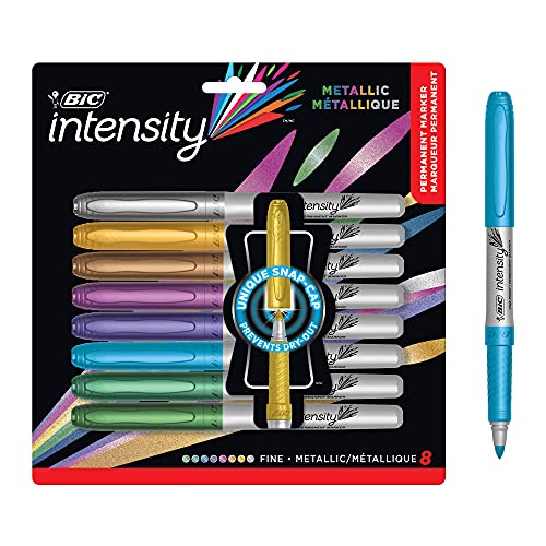 BIC Intensity Metallic Permanent Markers, Fine Point, 8-Count Pack of Metallic Markers (Assorted Colors May Vary) With Non-Slip Grip for Comfort and Control