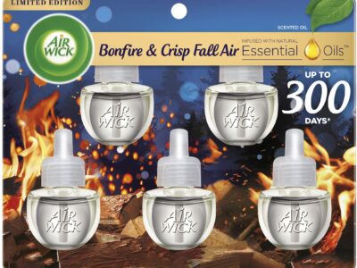 Air Wick Plug in Scented Oil Refill, 5ct, Bonfire and Crisp Fall Air, Essential Oils, Air Freshener Fall Scent, Fall décor